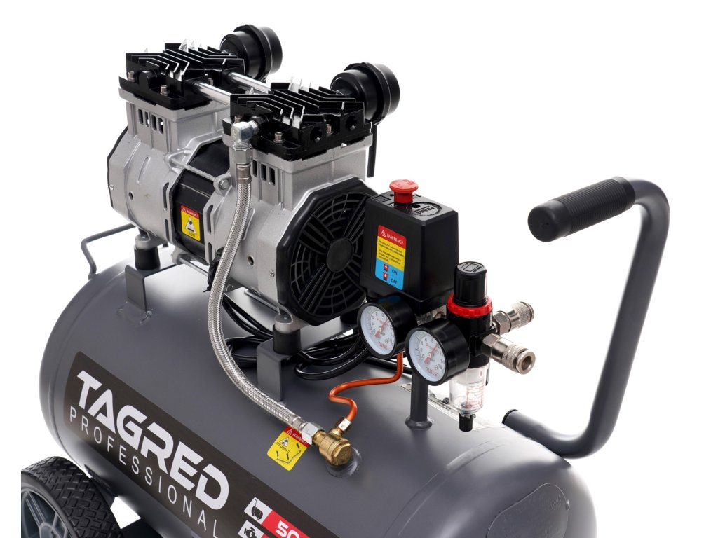 Високият комфорт на работа, безопасността и лесното използване са само част от предимствата на най-новата серия безмаслени компресори TAGRED! Тези компресори са незаменими там, където сгъстеният въздух не трябва да бъде замърсен с масло. Работят по-тихо, са по-малки и по-леки, което означава по-голяма мобилност в сравнение с традиционните маслени компресори.