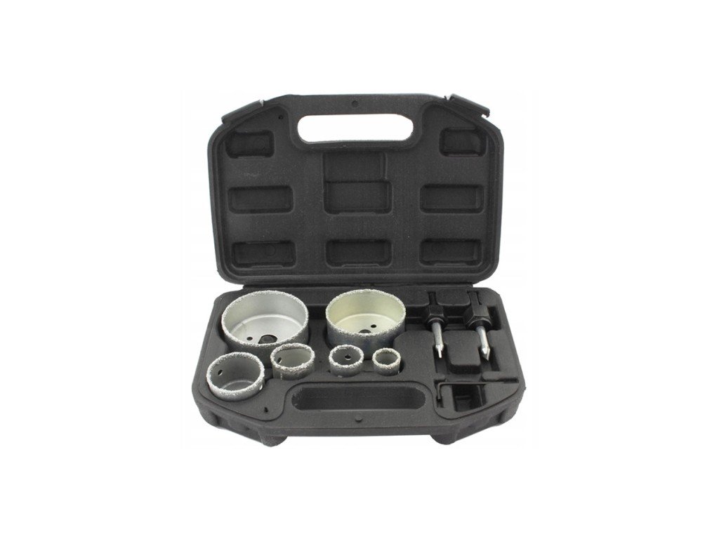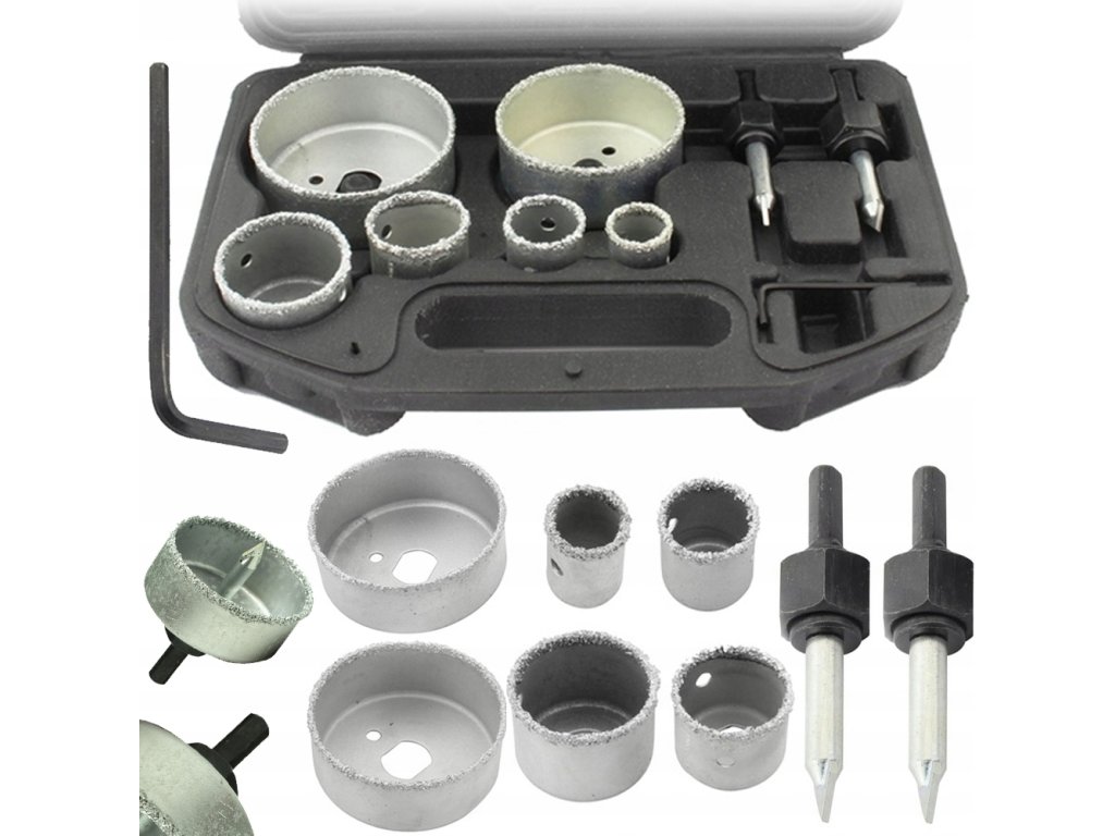 Този комплект включва 9 волфрамови пробойници, които са идеални за пробиване на отвори в различни материали като тухли, глазура, газобетон, теракота, керамика, гипсокартон и циментови плоскости. Пробойниците са изработени от високовъглеродна инструментална стомана (HCS) и са с покритие от волфрамов карбид за дълъг живот и ефективна работа.