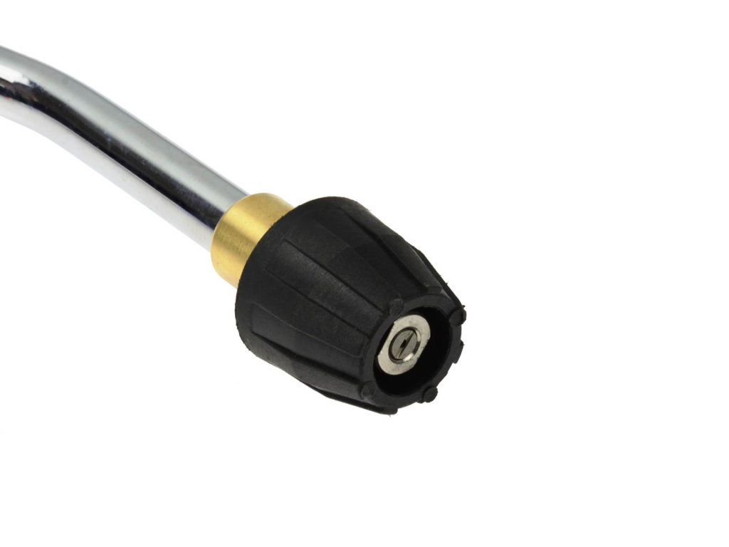 Разполага с присъединителна резба M22x1.5 от страната на дюзата и маркуча, осигуряваща широко съвместимост с повечето аксесоари на марката KARCHER. Ергономичната форма на дръжката гарантира комфорт по време на работа, а също така има заключващ механизъм, който предотвратява нежелано натискане на спусъка и стартиране на уреда.