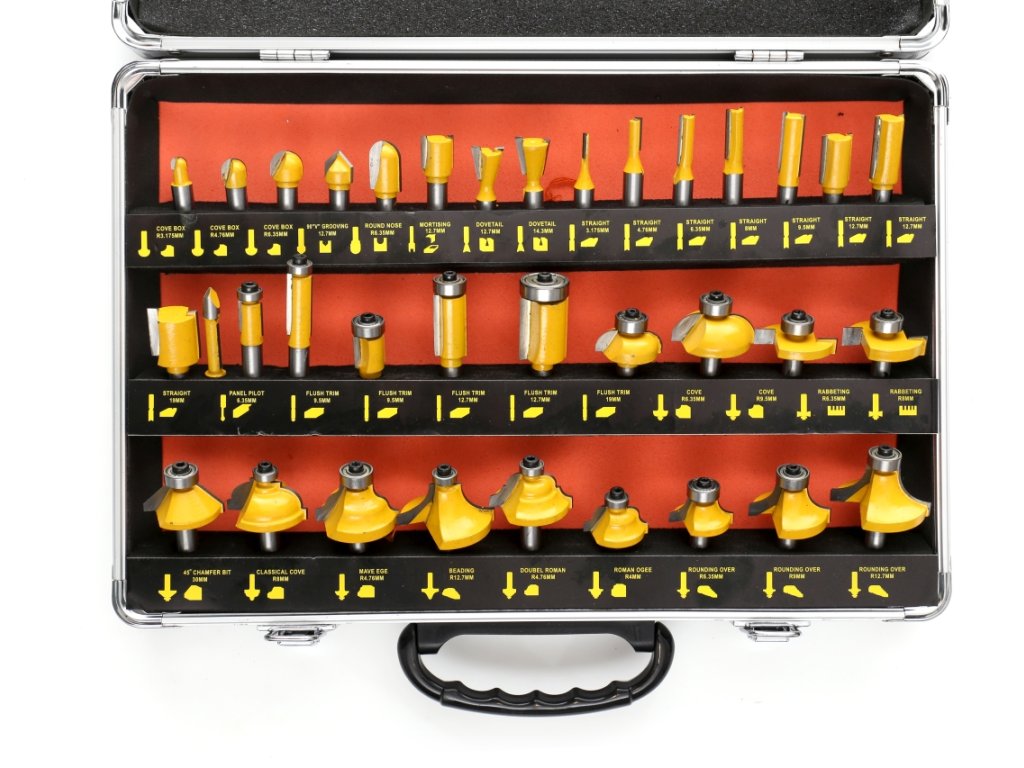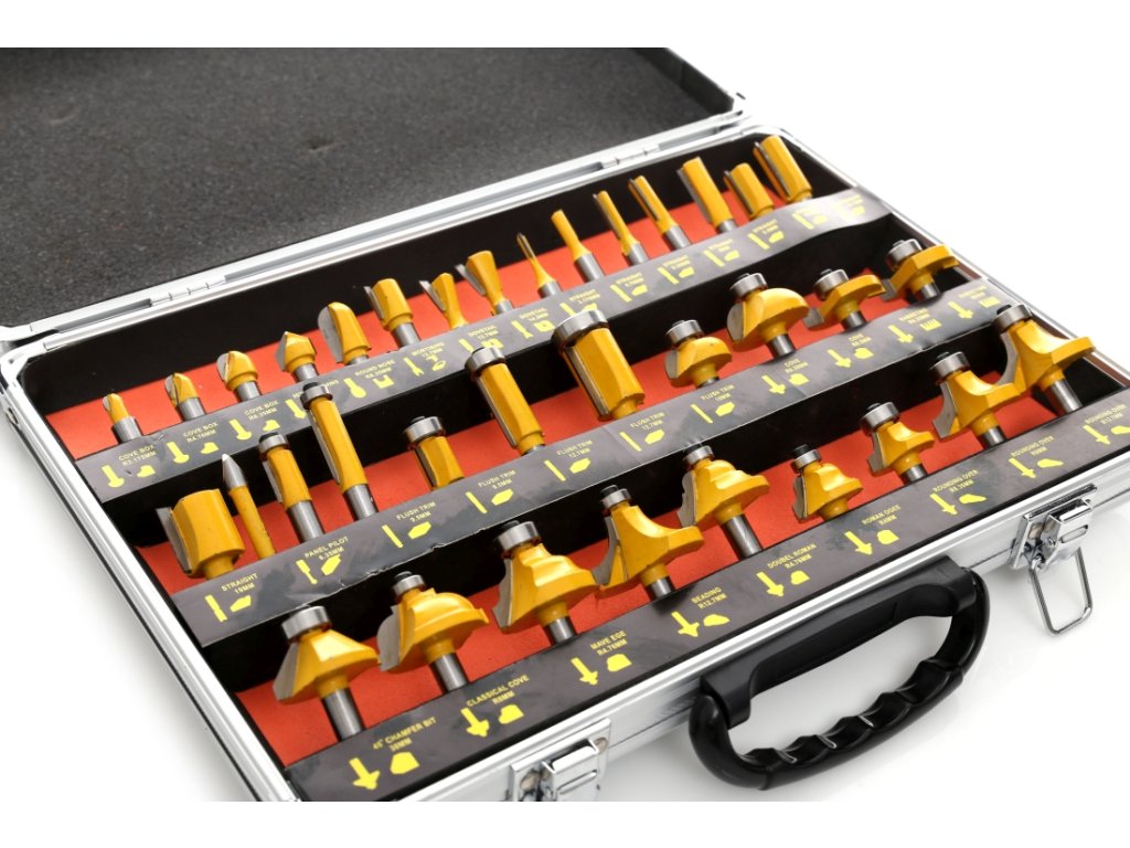 Този отличен комплект е идеален за обработка на ръбове на различни елементи при изработка на мебели, рафтове и рамки. Можете да го използвате и за създаване на профил за външни и вътрешни рамки. Воденето чрез лагер и водач позволява точно проследяване на режещата част при обработката, дори върху извити ръбове, без необходимост от използване на шаблони.