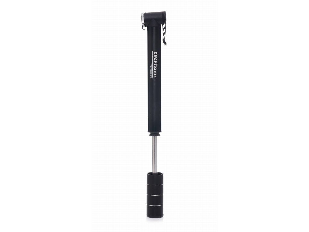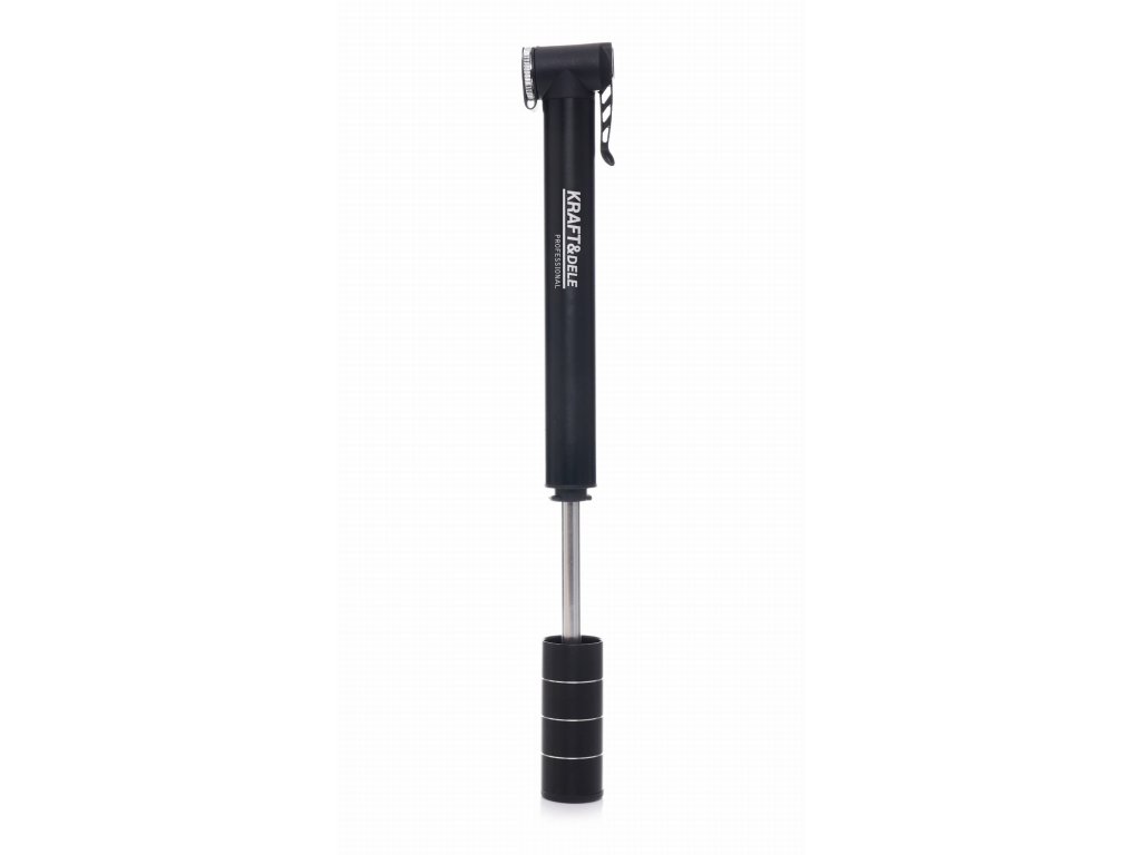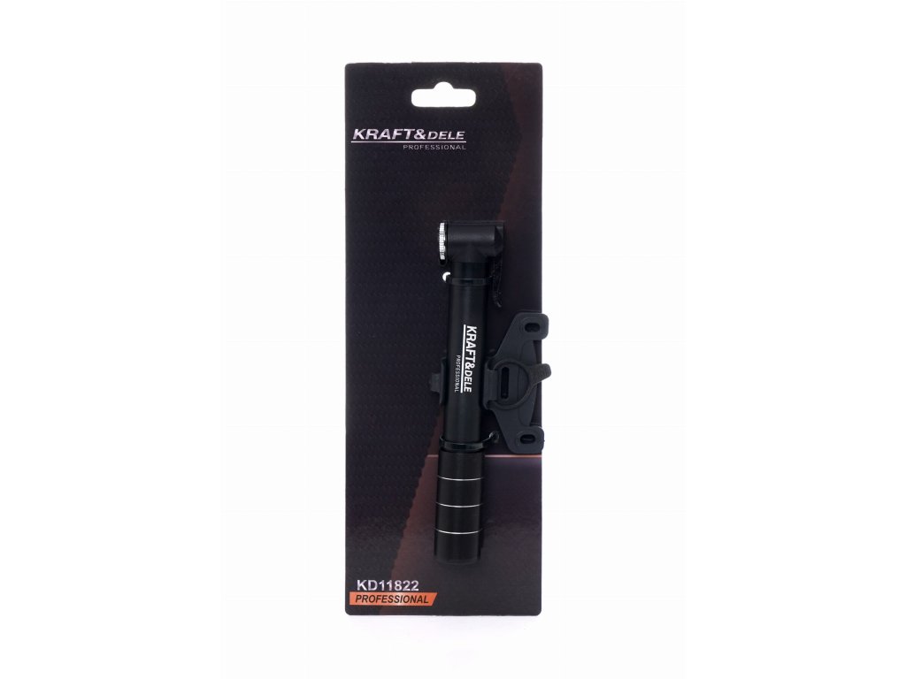 Ръчна помпичка за велосипед на марката Kraft&Dele, модел KD11822, предназначена за бързо надуване или донапомпване на гумите на велосипеда. Има универсална глава за клапани Presta и Schrader.