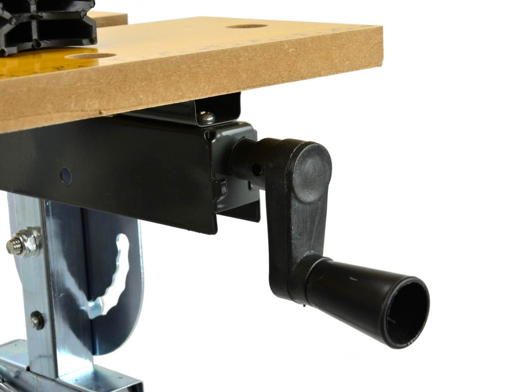 Работният плот е оборудван с регулируеми захващащи челюсти, които позволяват закрепване на предмети с различни форми. Настройката на масата се извършва удобно чрез копчета, разположени от дясната и лявата страна.