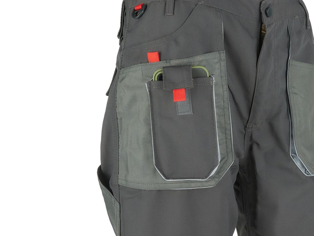 Панталоните разполагат с 9 джоба, от които 6 с велкро. Включени са и джоб за смартфон, халка за ключове и лента за чук. Коленете и джобовете са със засилена защита, което значително удължава живота им. Освен това панталоните имат тройни шевове за още по-голяма здравина и стабилност. Ширината на панталона може да се регулира чрез копчета, а също така има идентификационен етикет. Продуктът е сертифициран с CE.