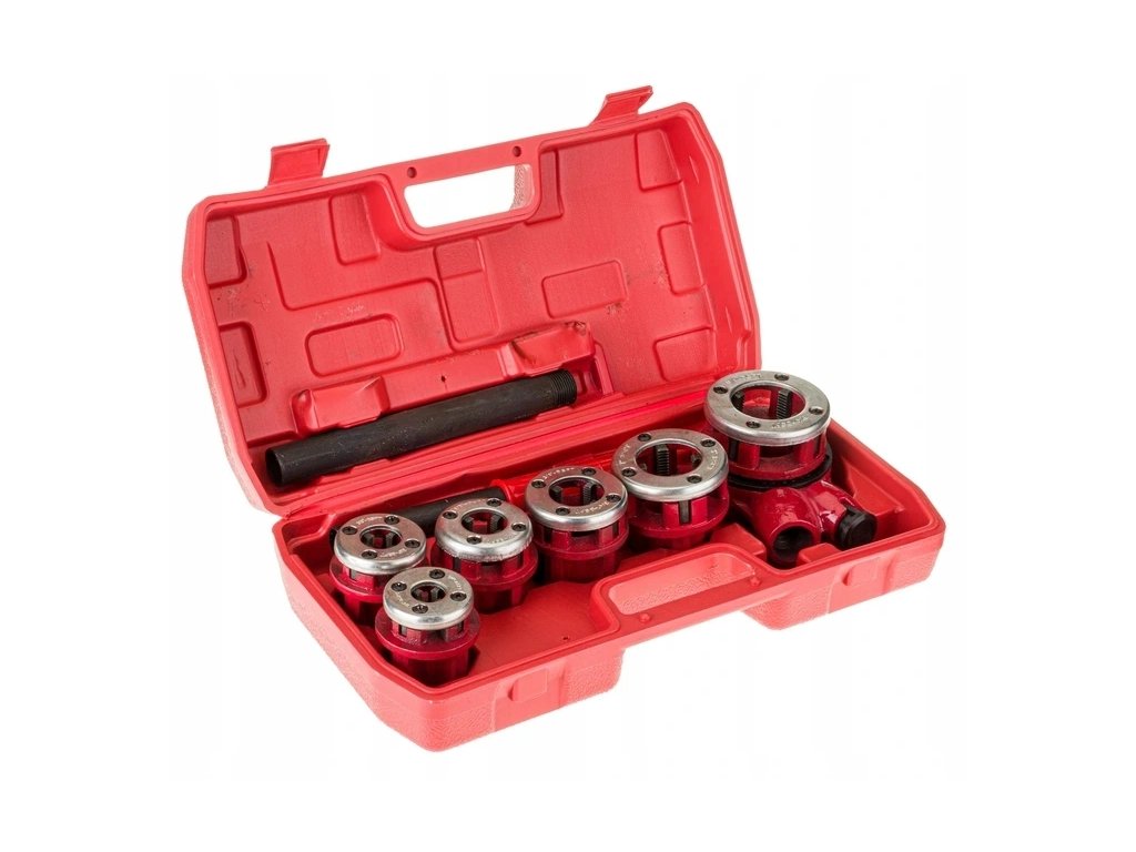 Ръчен хидравличен резбонар за тръби с 6 приставки е идеален инструмент за изработка на прецизни резби по тръби при хидравлични ремонти и в работилници. Комплектът включва приставки за размери на тръби 1/4", 3/8", 1/2", 3/4", 1" и 1¼". Благодарение на здравата чугунена конструкция устройството издържа на високи натоварвания. Ергономичната звезда и удължителната дръжка осигуряват лесна работа. Всичко е опаковано в практичен куфар за удобно съхранение и пренасяне.