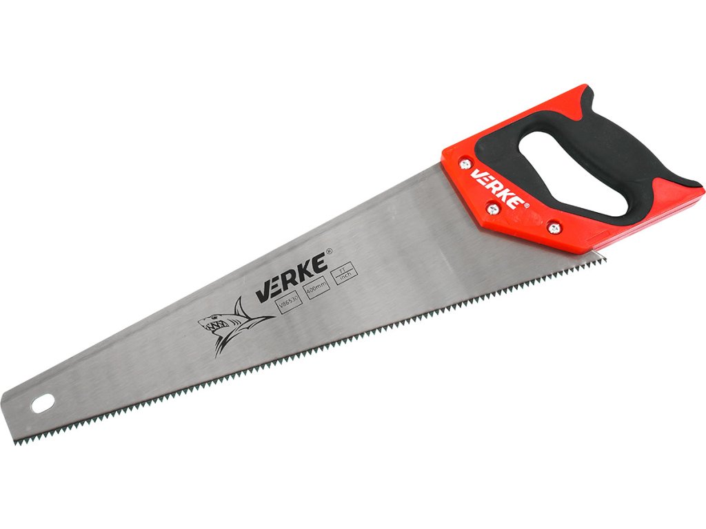 Ръчен трион за месар 450 мм, 10T VERKE V86534 е изработен от студено валцована стомана. Ергономичната двукомпонентна дръжка е прикрепена към ножа с три винта. Зъбите са закалени. Трионът разполага с пластмасова капачка, която предпазва зъбите и включва отвор за закачане, например в гараж или работилница.