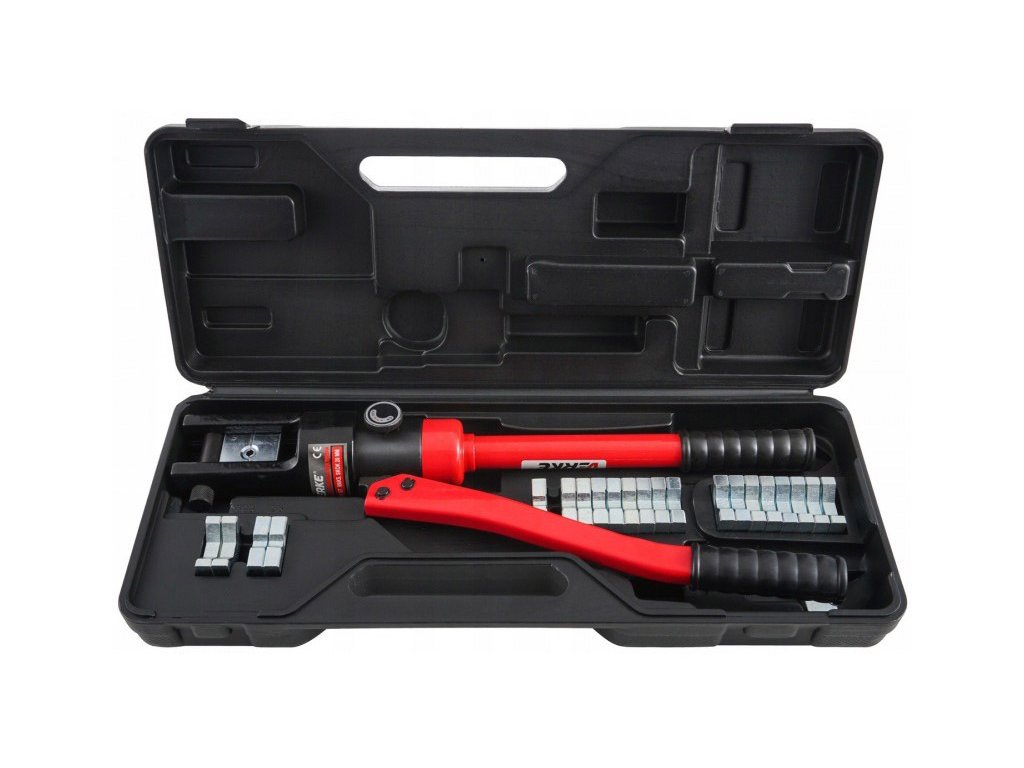 Ръчна хидравлична преса за кабелни уши с усилвател. Предназначена за кримпване на кабелни накрайници на електрически кабели или за кримпване на въжета. Благодарение на хидравличното усилване, кримпването на големи накрайници не изисква усилие. Пресата е оборудвана с въртяща се глава. Дължината на кримпващия инструмент е приблизително 47 см.