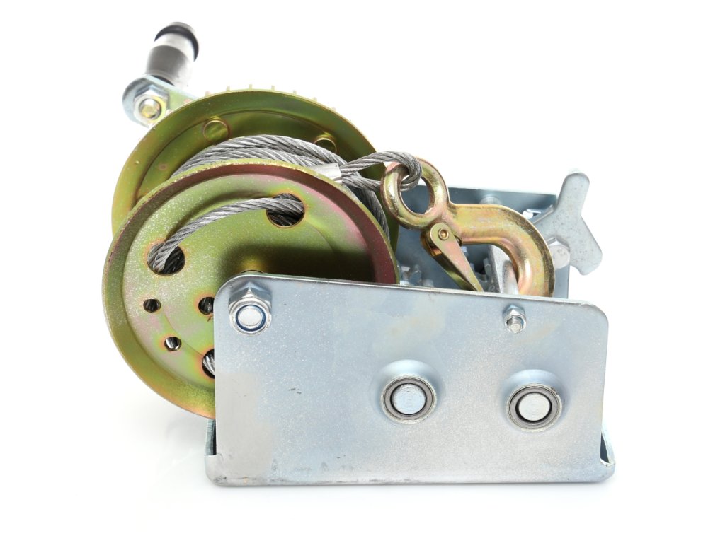 Лебедката е изработена от висококачествена конструкционна стомана, гарантираща дълъг живот и устойчивост. Отлятият кука разполага с обратна пружина за лесна експлоатация. За управление служи ръчна дръжка с заключващ механизъм, което позволява ефективно дърпане и спускане на тежести. Този инструмент е идеален за опъване, връзване, закрепване и изтегляне на тежки и обемни товари.