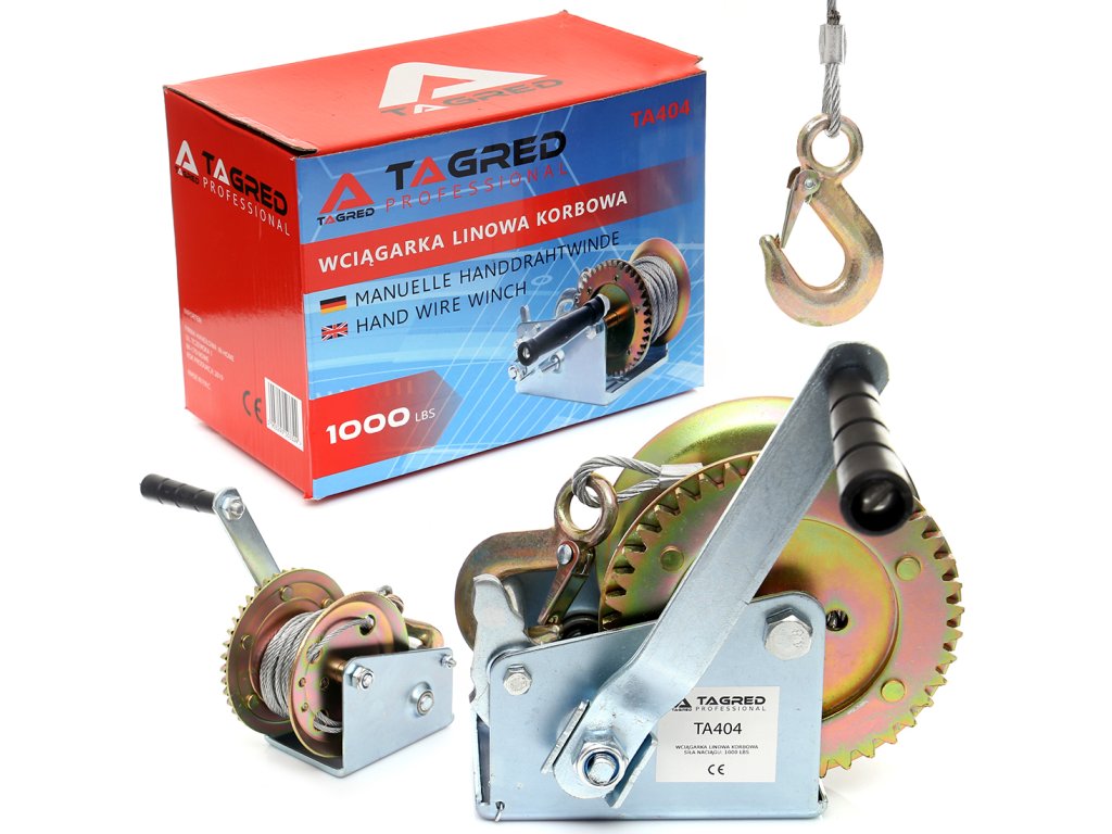 Ръчна лебедка с дръжка, въже, 453 кг, 1000 lbs, въже 10 м