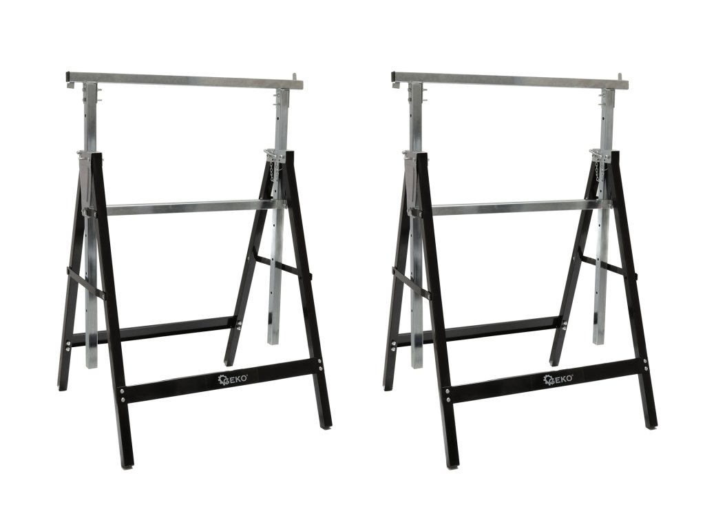 Комплект от 2 броя регулируеми работни стойки - козел G10873 е незаменим помощник във всяко работилница или гараж. Тези стойки разполагат с 6-степенно регулиране на височината с отстояние между отворите от 10 см, което осигурява тяхната универсалност и лесна адаптация.
