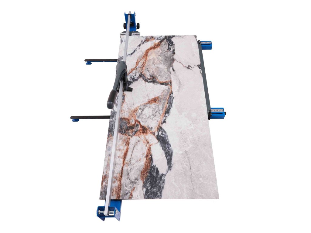 Резачката позволява право рязане с дължина до 1200 мм и наклонено рязане до 850 мм. С огъваща сила от 1000 кг, инструментът е подходящ за интензивна употреба. Двата странични опорт се с дължина 28 см и покрити с пяна гарантират стабилност по време на рязане. Уредът е снабден и със страничен упор за наклонено рязане, което разширява приложението му в професионалната обработка на плочки.