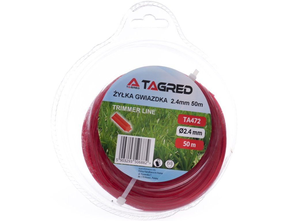 Режеща корда за бензинова косачка, храсторез, звезда 2,4мм x 50м, марка TAGRED е проектирана за максимална ефективност на рязане и отлична устойчивост срещу износване и слепване.