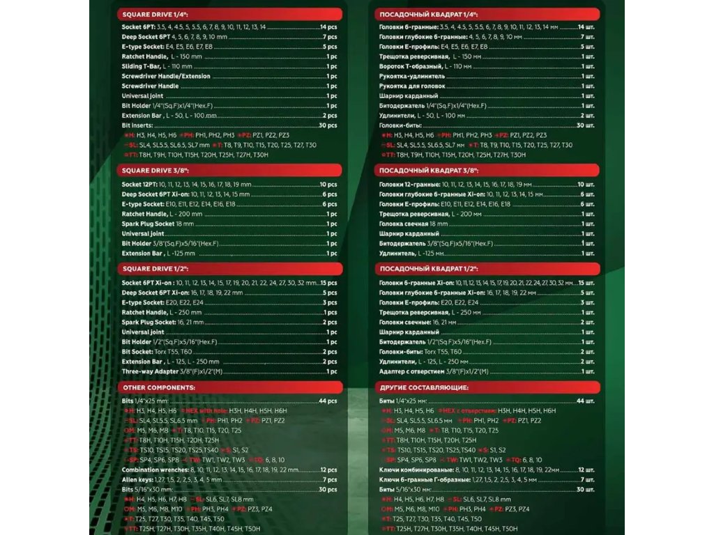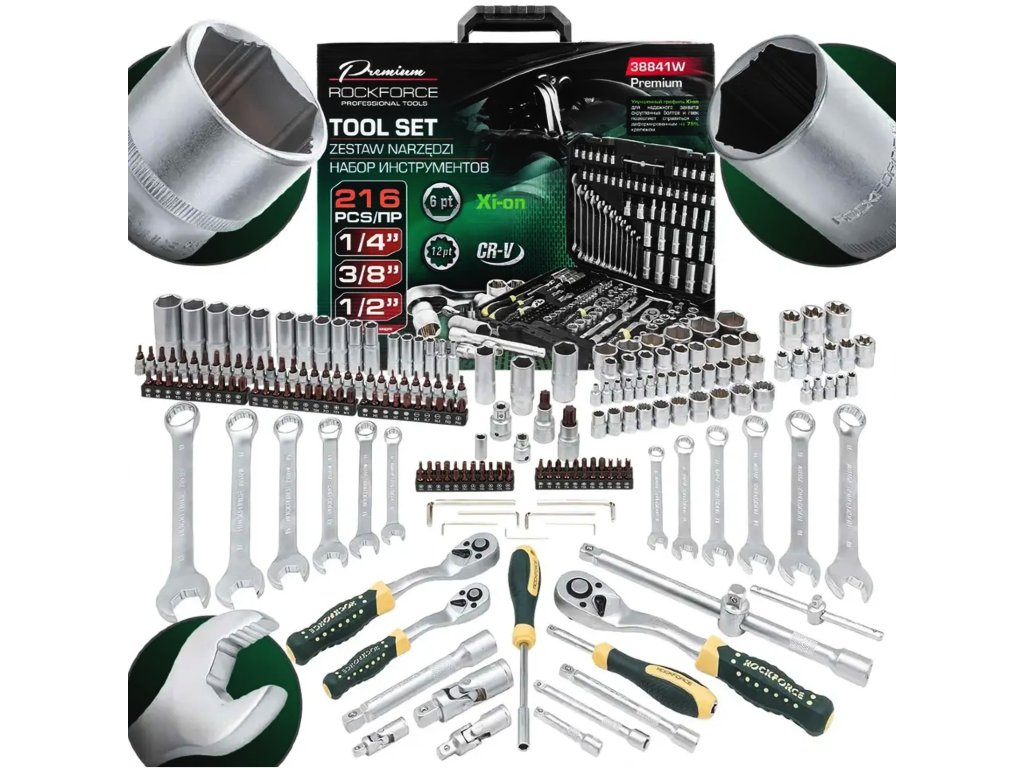 Комплект инструменти Rockforce Premium Xi-on, 216 части, 3/8", 1/2", 4-32 мм