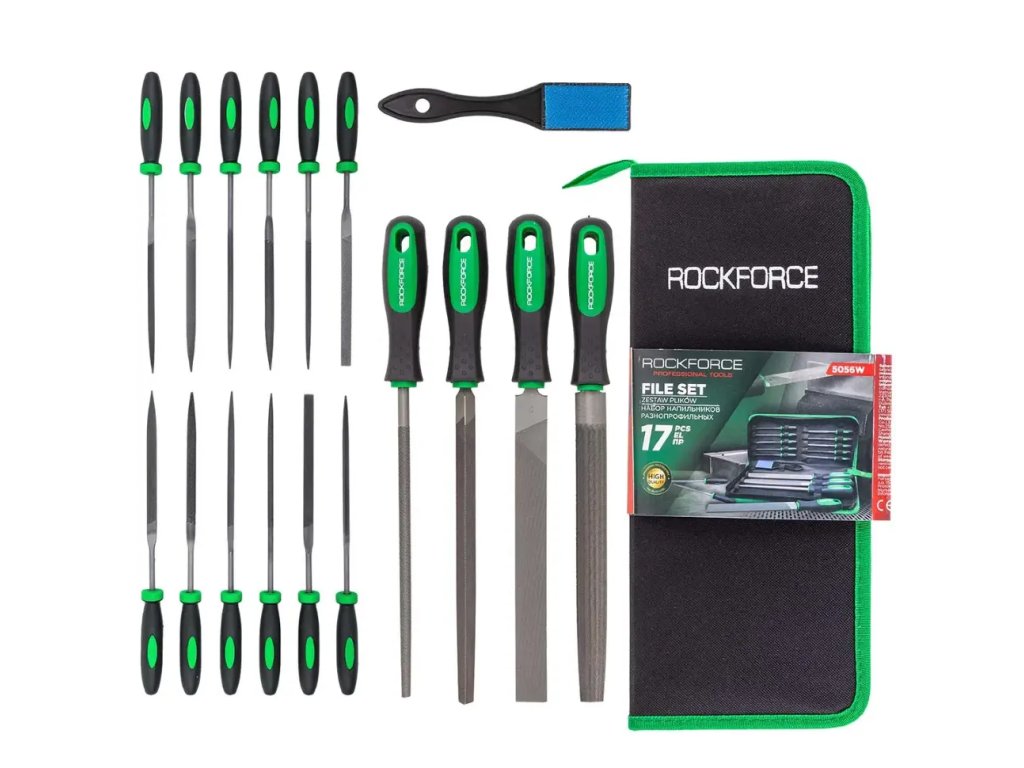 ROCKFORCE Комплект пили и иглени пили 17 бр. за метал и дърво, с калъф