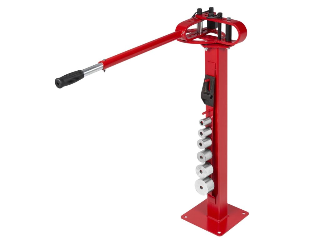 | Спецификации • Ъглово огъване на плоски профили: 8 x 50 мм • Остри огъвания на плоски профили: 6 x 50 мм • Квадратен профил: 6 x 16 мм • Кръгла стомана: Ø 16 мм • Подсилваща стомана: Ø 12, 24, 30, 37, 43, 49, 62, 75 мм • Тип закрепване: към основата (4 отвора) • Тегло: 26 кг • Височина: 100 см |