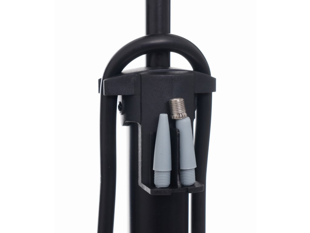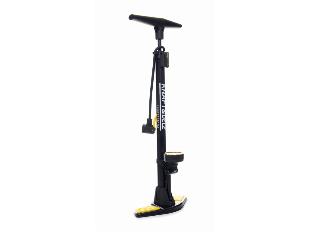 Ръчно управлявана колонна велосипедна помпа с манометър на марката Kraft&Dele, модел KD11825, предназначена за бързо напомпване или донапомпване на гумите на велосипеда. Двойна глава пасва на всички видове клапани AV (Schrader), DV (Dunlop) и FV (Presta). Колонната помпа осигурява стабилност и комфорт при напомпване.