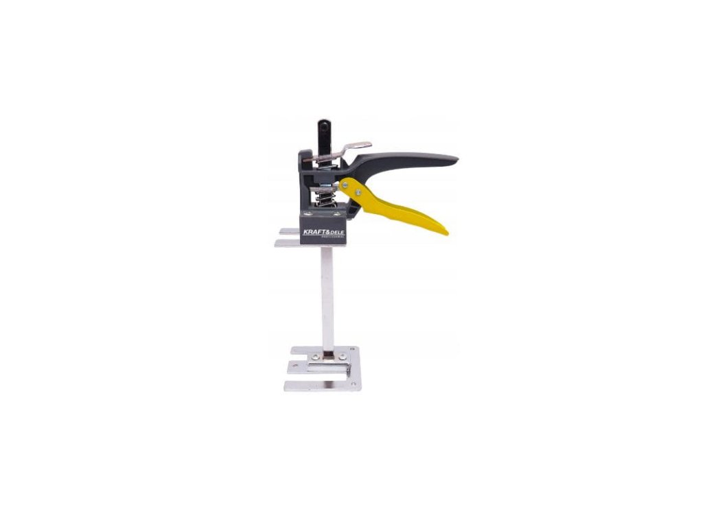 Profesionální ruční zvedák značky Kraft&Dele model KD3069 slouží k přesnému polohování – jednoduchému a rychlému zvedání a spouštění keramických, skleněných, mramorových desek, stejně jako rámů dveří či nábytku. Podpěry usnadňují proces kladení prvního počátečního řádku keramických dlaždic na stěnu, zejména velkoformátových desek, zajišťujíc dokonalé vyrovnání a rovinnost. Zařízení nabízí stupeň volné regulace, umožňující přesné polohování prvků různých tvarů a velikostí.