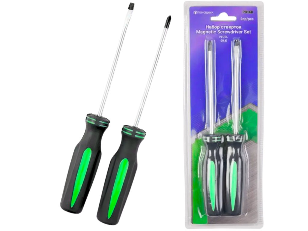 Комплект от 2 отвертки с магнитна глава PH2 × 110 мм, SL5 × 110 мм