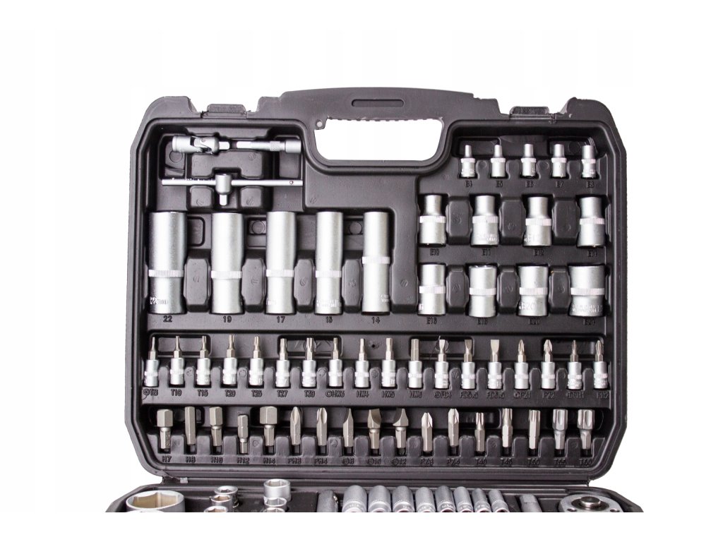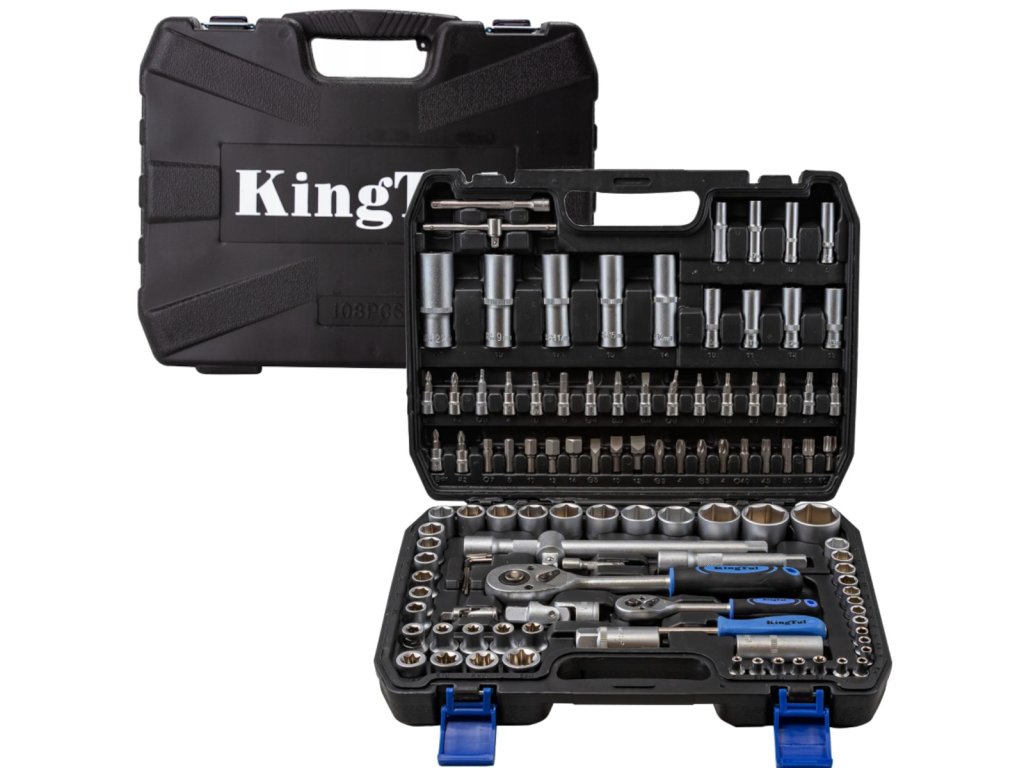 Комплект накрайници 108 елемента, опакован в оригиналния куфар. Куфарът е изработен от висококачествена пластмаса. В комплекта ще намерите всичко необходимо за домашния майстор и автомобилния ентусиаст. Това е комплект за всеки – в куфара ще намерите, наред с другото, накрайници, прецизни отвертки и много други.
