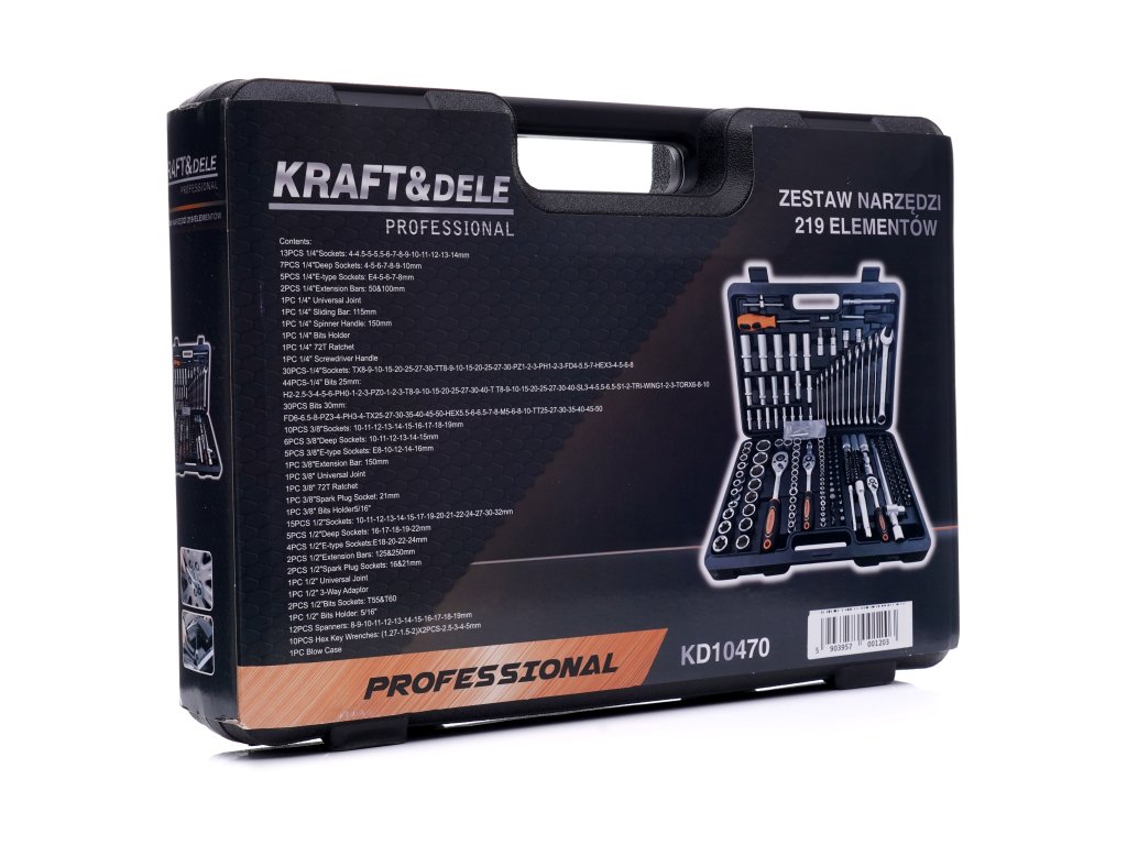 Nesmírně rozsáhlý set nářadí značky Kraft&Dele s symbolem KD10470. Nářadí je charakterizováno solidním zpracováním, odolnými materiály a praktickým kufříkem, kde má každý nástroj své místo.