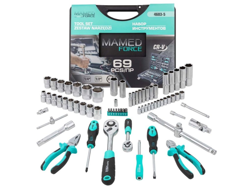Комплект инструменти 69 бр. в куфар – тресчотки, накрайници и ключове