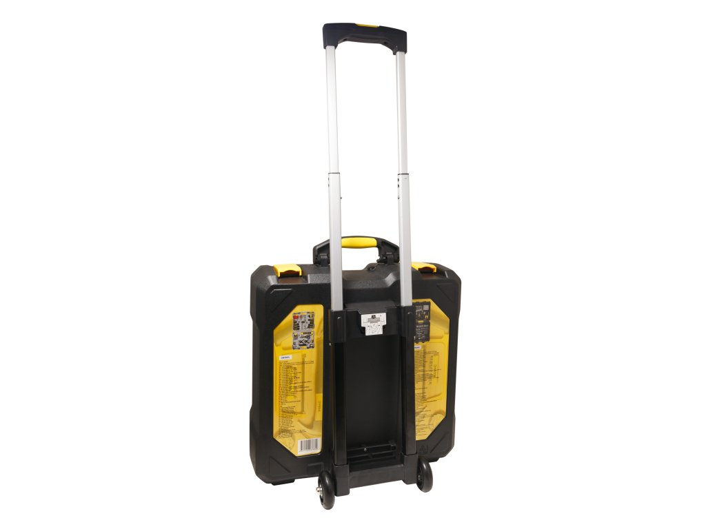 Комплект инструменти в куфар (мобилен куфар 2 в 1). Вградените колела улесняват придвижването на куфара, както и телескопичната дръжка. Перфектно изработен куфар за инструменти. Целият комплект е изработен с акцент върху солидно качество. Куфар с колела и издърпваща се телескопична дръжка за пренасяне на комплекта (като куфар за пътуване).