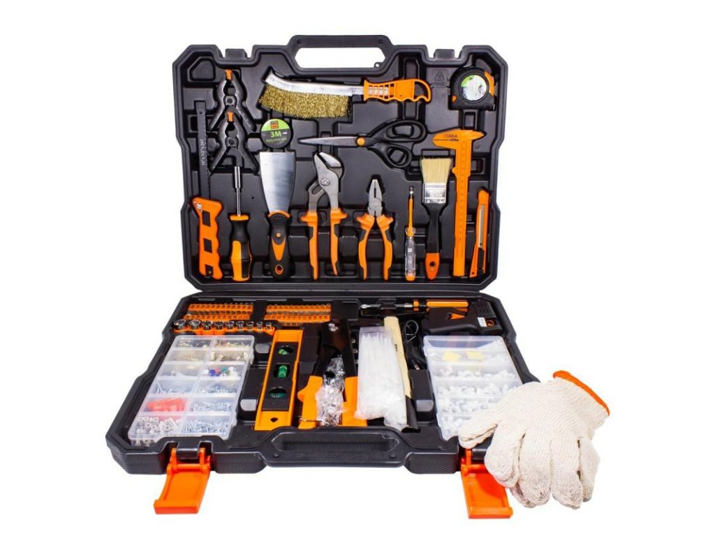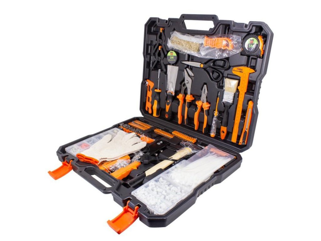 Благодарение на разнообразието от инструменти в този комплект, ще можете да извършвате ремонтни, реконструкционни и строителни работи с прецизност и ефективност. В комплекта ще намерите много ключове, отвертки, вложки, битове, свредла, менгемета и други полезни инструменти.