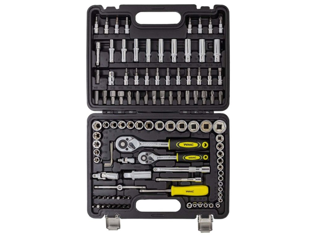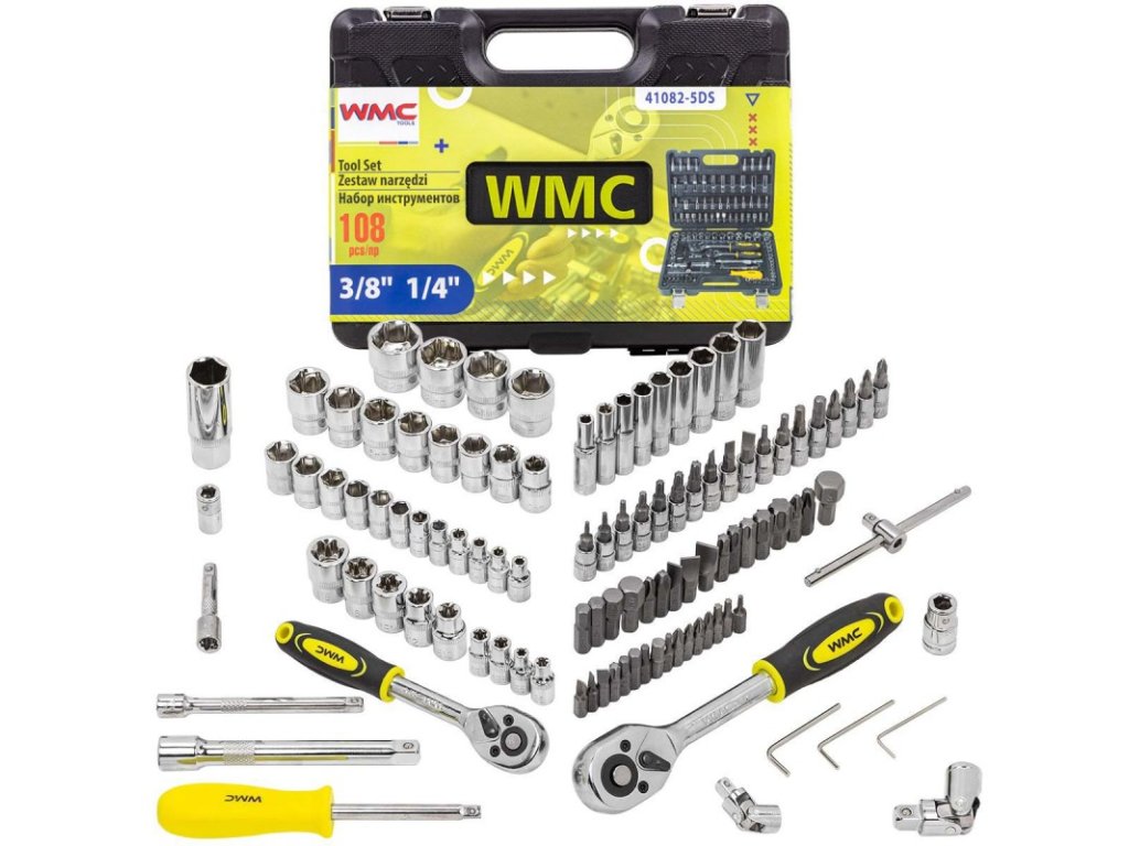 Комплект от 108 гнезда, опакован в оригинален куфар. Кутията е проектирана и изработена от висококачествена пластмаса. Комплектът съдържа всичко необходимо за домашния майстор и автомобилния ентусиаст.