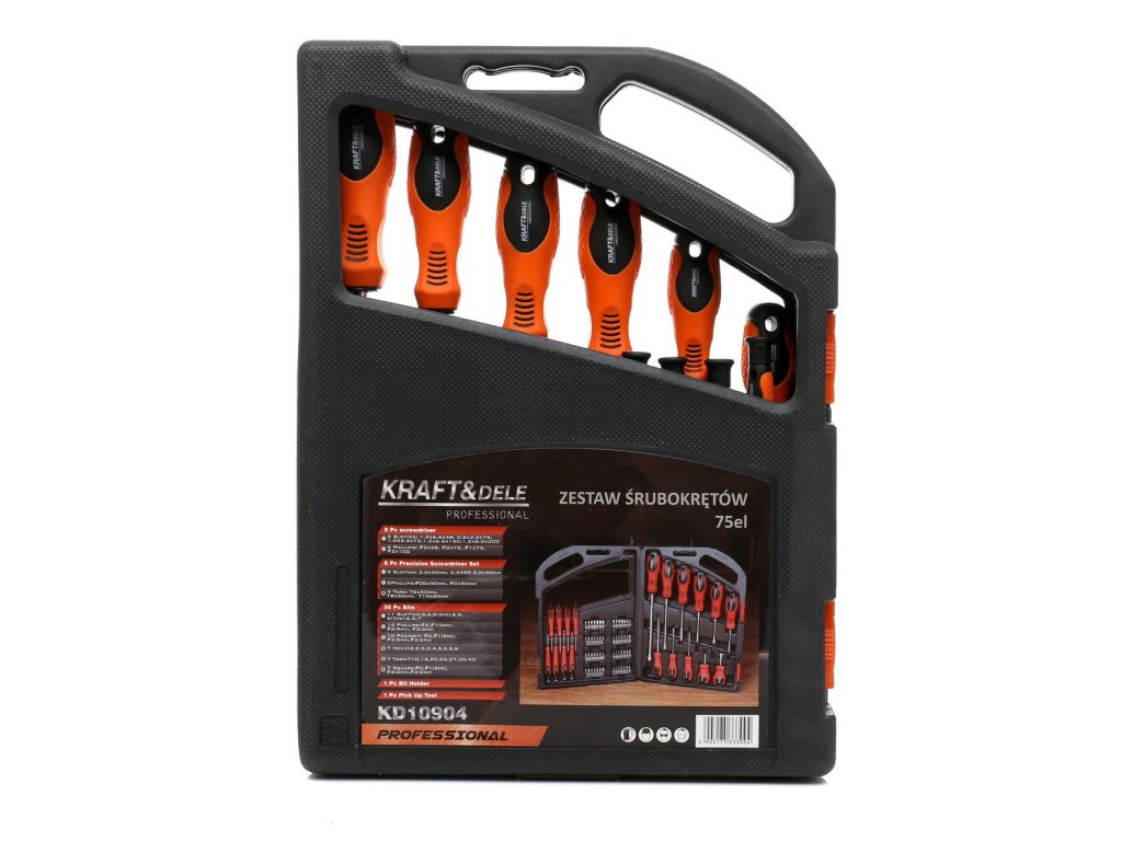 Комплект отвертки и битове 75 бр. KD10904 на марката Kraft&Dele се докаже във всеки гараж или работилница. Комплектът включва практичен кейс, който улеснява съхранението на отвертките.