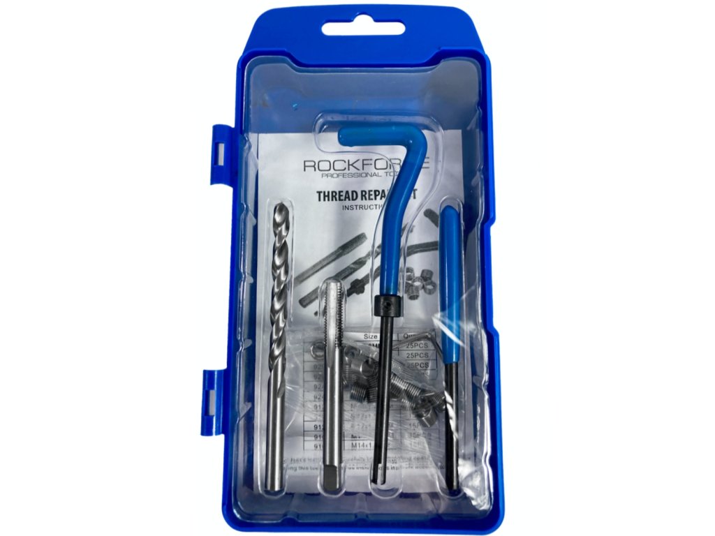 - комплект от 20 сменяеми вложки – пружини за резба. Пружините се компресират при завинтване, което улеснява завинтването, а след разширяване блокират развинтването
