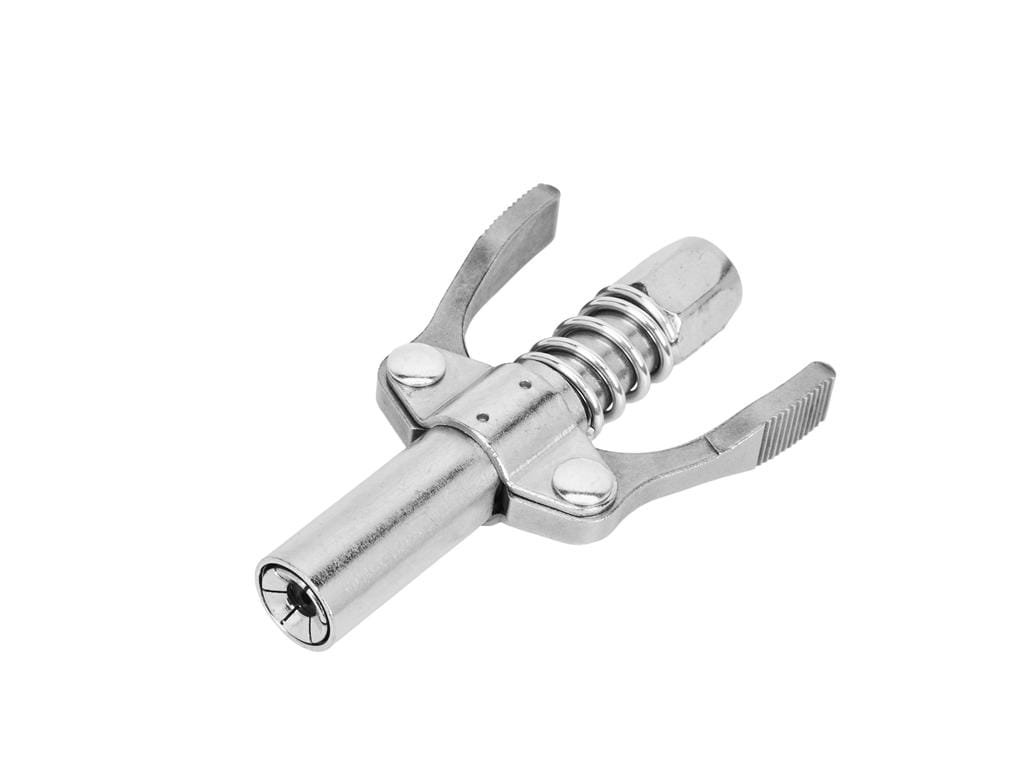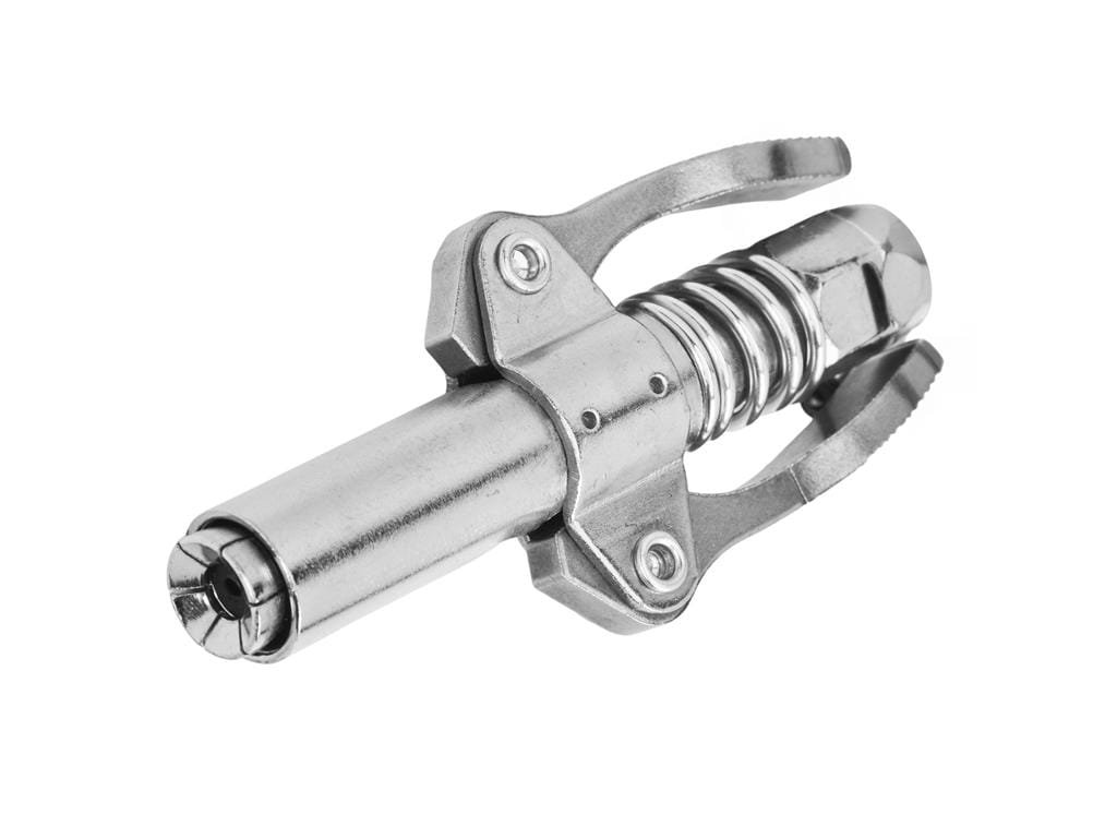 Професионална самозаключваща се крайник за грес от марката Kraft&dele, модел KD10871, е уникално решение, което осигурява надеждност, производителност и удобство при каквито и да било условия на работа. Използвана е подобрена шестчелюстна конструкция. Тази крайник за мазнини осигурява изключителна стабилност и сигурно щракване. Дори при екстремен натиск до 10 000 PSI гарантират подсилените челюсти и висококачественото уплътнение, което осигурява безопасно и ефективно смазване без риск от изтичане.