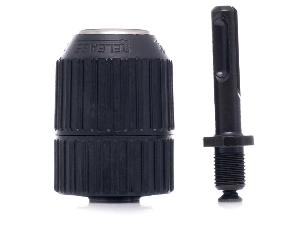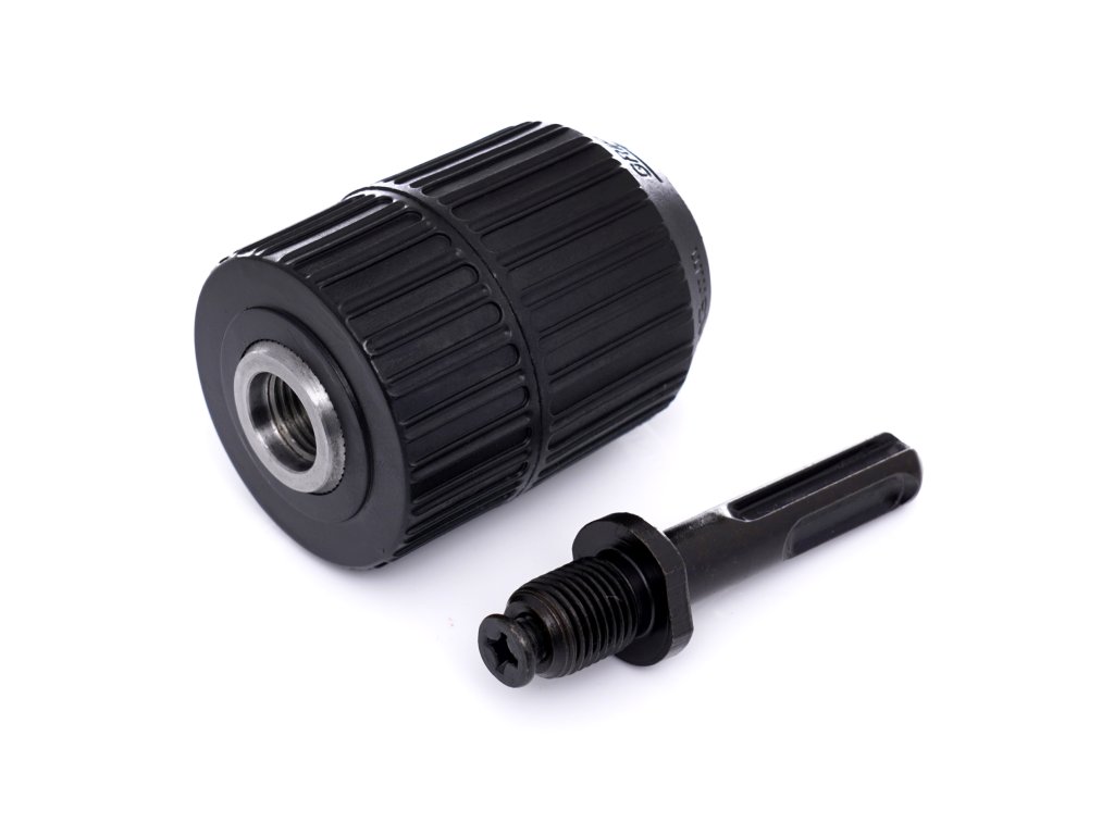 В комплекта е включен и адаптер SDS+, позволяващ свързване към шпиндел с размер 1/2".