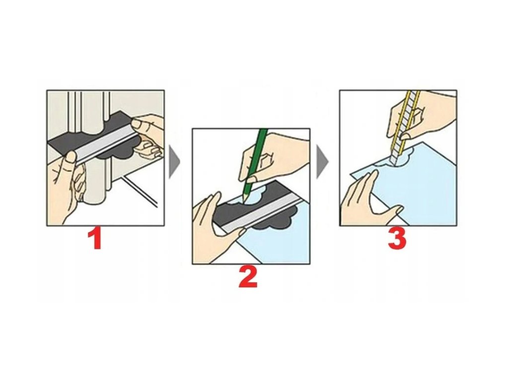 1. Натиснете шаблона за измерване на форми 25 см върху повърхността, за да копирате контура.