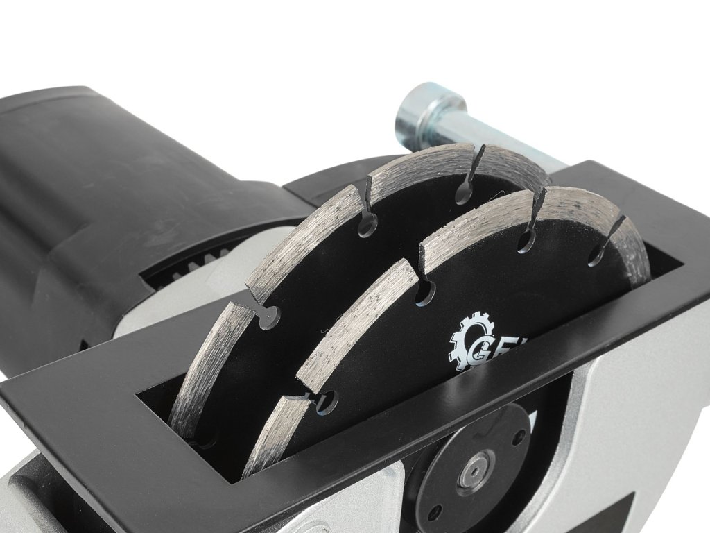 Инструментът позволява монтирането на два диамантени диска с размери 150x1,9x22,2 мм. Работата с два диска едновременно дава възможност за по-бързо и ефикасно оформяне на по-широки канали в сравнение с уреди с един диск. Това подреждане осигурява паралелни канали с константна ширина – ключово за проекти, изискващи прецизност. Разпределянето на натоварването между двата диска удължава живота на инструмента и намалява износването.