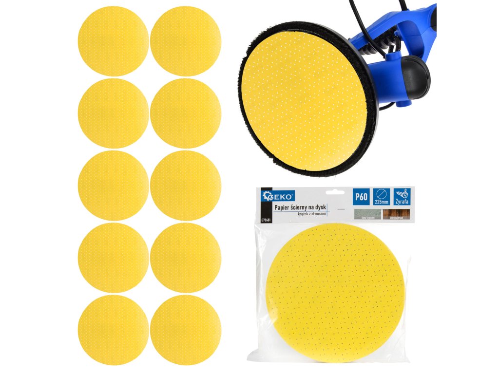 Изключително издръжлив диск с диаметър 225 мм и зърнистост P60 с отвори за отвеждане на праха от обработвания материал. Шкурката е подходяща за шлайфане на различни повърхности. Здравият велкро крепеж осигурява сигурно захващане дори при продължителна употреба.