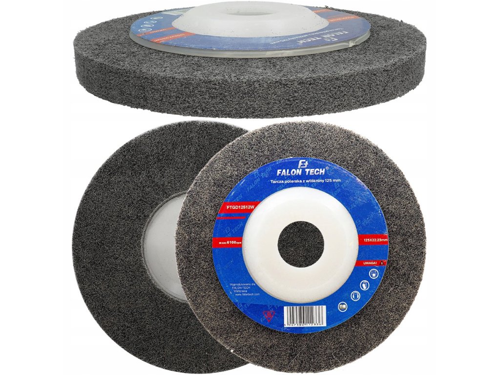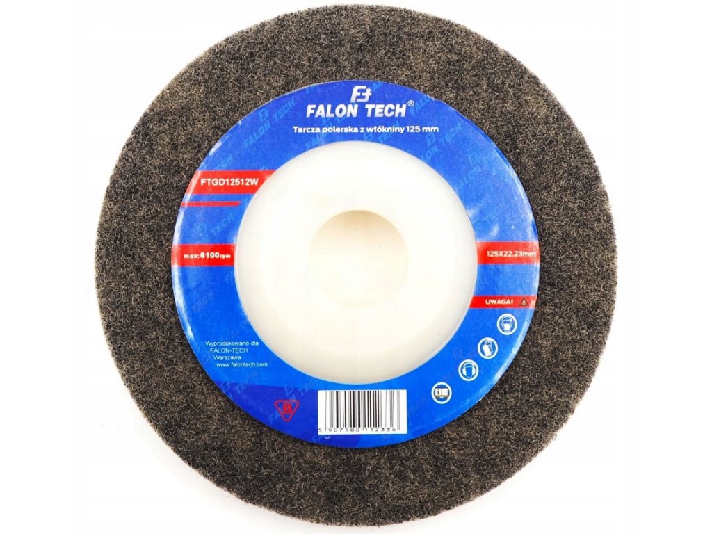 Висококачествен шлифовъчен диск с диаметър 125 мм и отвърстие 22,23 мм, предназначен за ръчен ъглошлайф. Благодарение на 12 мм дебелина на влакнестия слой осигурява дълъг експлоатационен живот и отлични резултати при почистване, шлифоване и полиране. Идеален за работа с материали като неръждаема стомана, метали, цветни метали и алуминий. Дискът е отлично средство за премахване на ръжда, боя, замърсявания и подготовка на повърхности за полиране.
