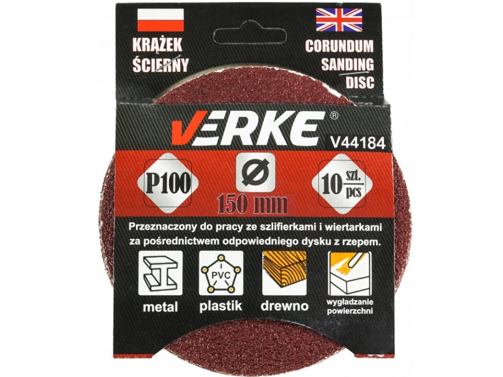 Шлифовъчен диск 150 мм P100 10 бр. VERKE V44184