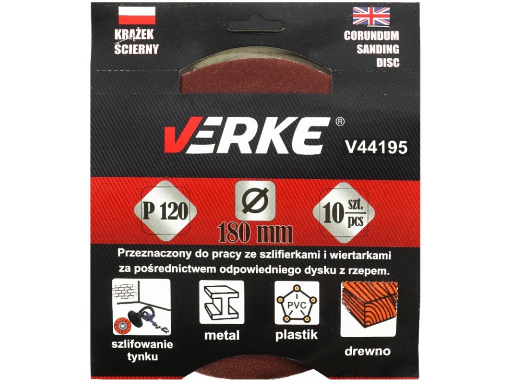 Шлифовъчен диск 180 мм P120, 10 бр. VERKE V44195