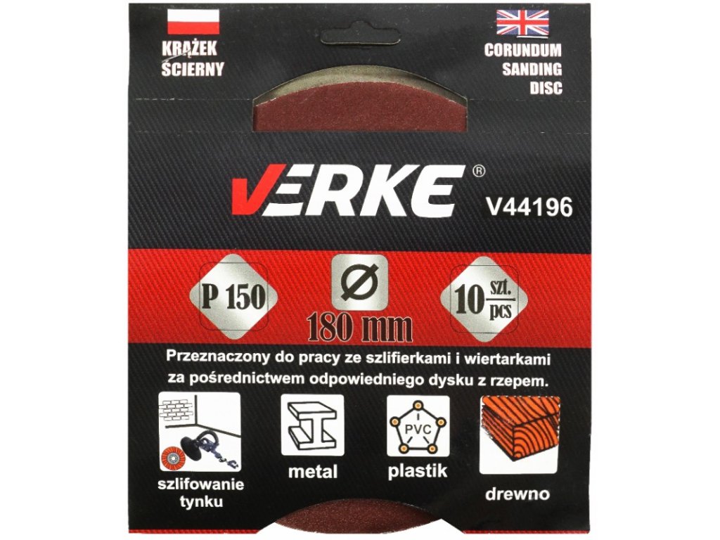 Шлифовъчен диск 180 мм P150 10 бр Verke V44196