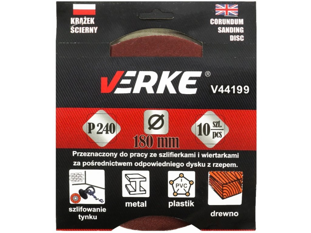 Шлифовъчен диск 180 мм P240, 10 бр Verke V44199
