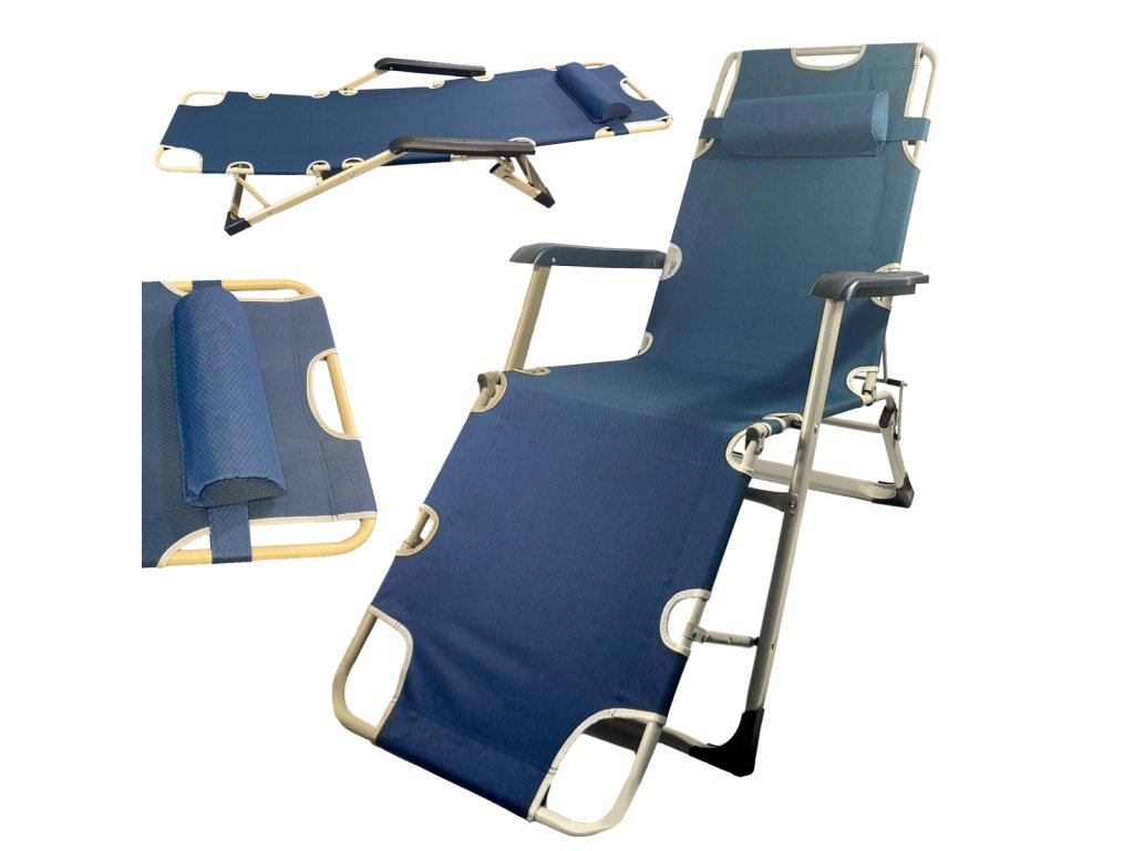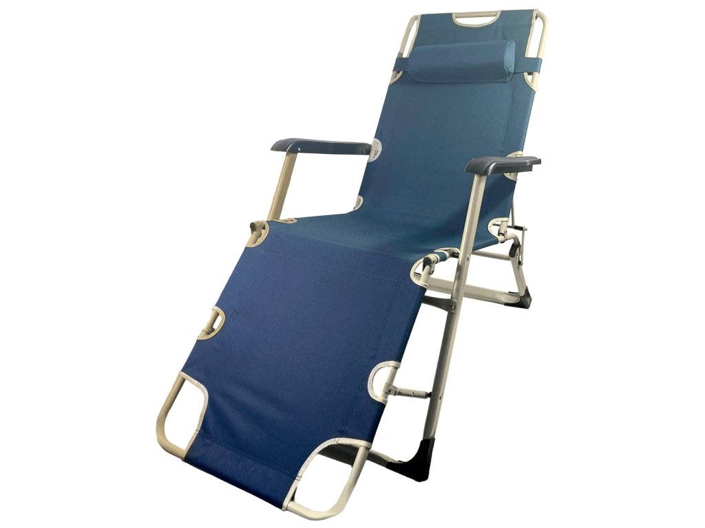 Шезлонгът може лесно да се сгъне, така че да не заема много място. Можете да го използвате не само в градината, но и да го вземете със себе си на плажа, край езерото или в гората.