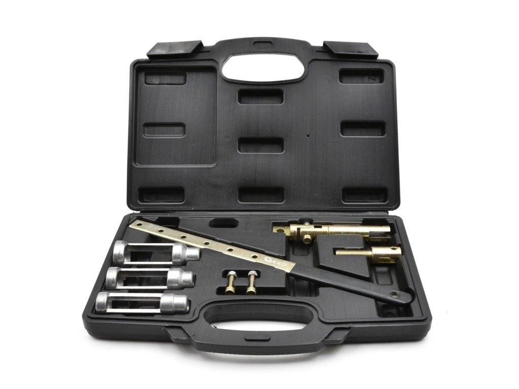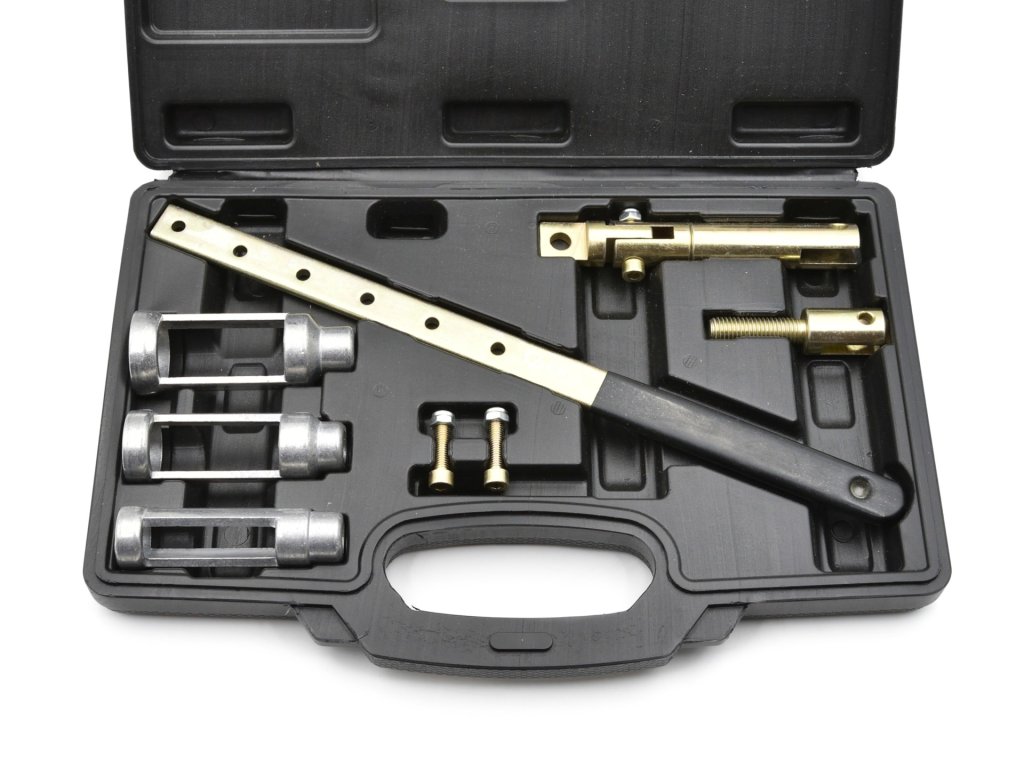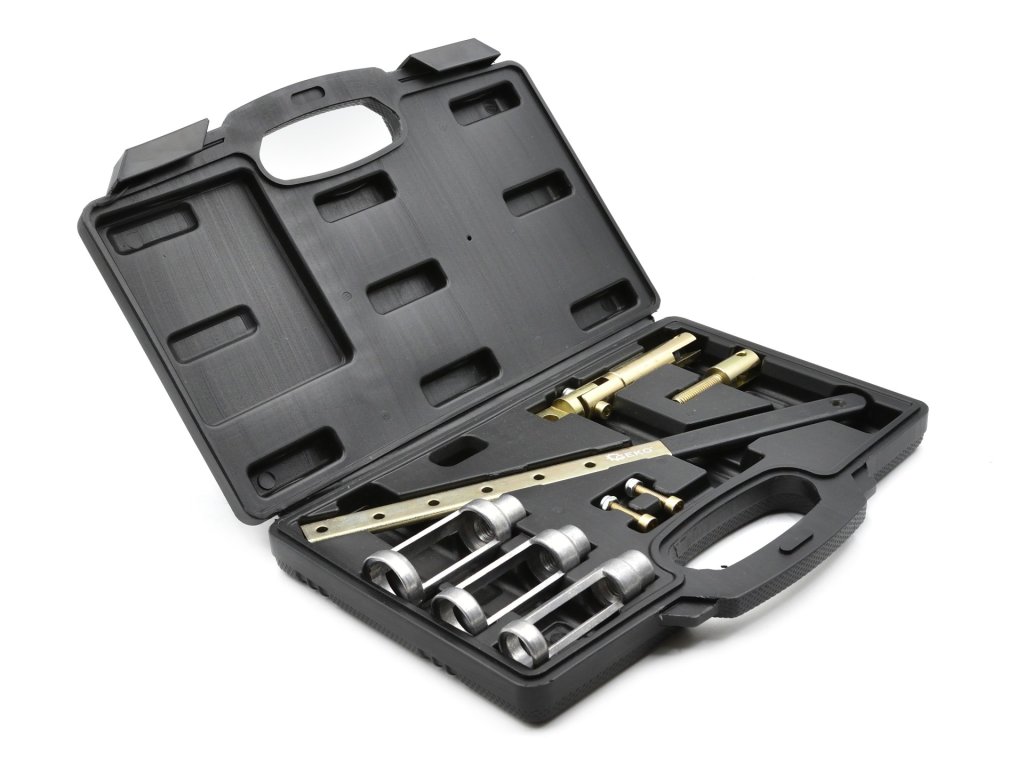 Продуктът се доставя с комплект от три различни адаптера, които улесняват демонтажа на клапанните пружини при различни типове двигателни конфигурации.