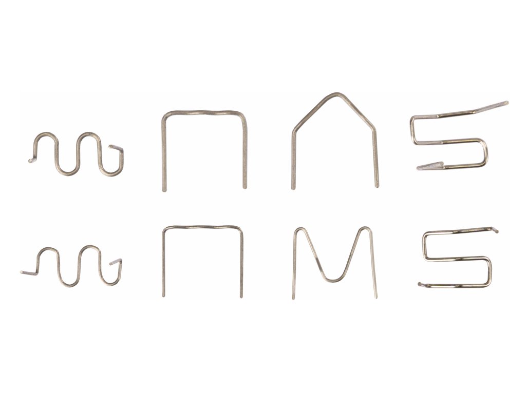 - RS18 (0,8 мм) - Скоба с лека вълна, също подходяща за заваряване на прави и тънки пукнатини; поставя се перпендикулярно на пукнатината.