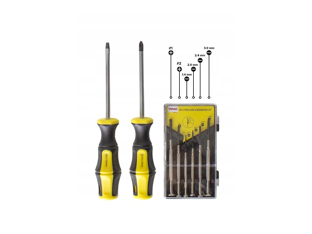 - Отвертки и комплект битове (кръстати, плоски, Torx, шестограмни и др.)