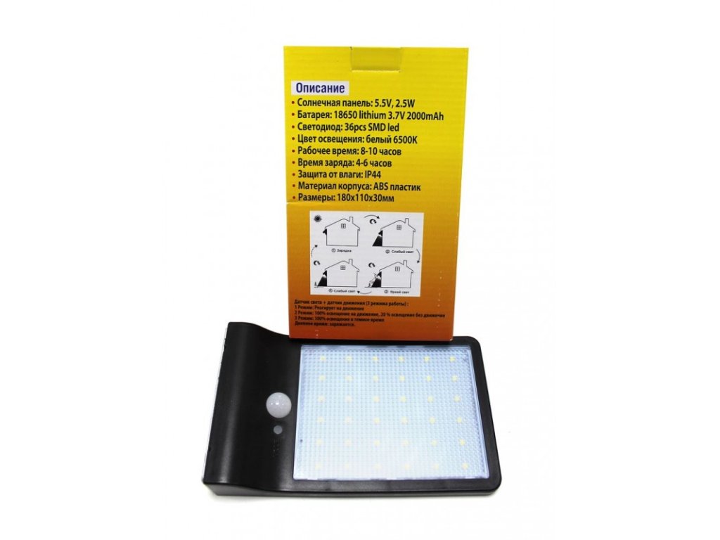 Слънчева лампа 36 LED със сензор за движение и здрач