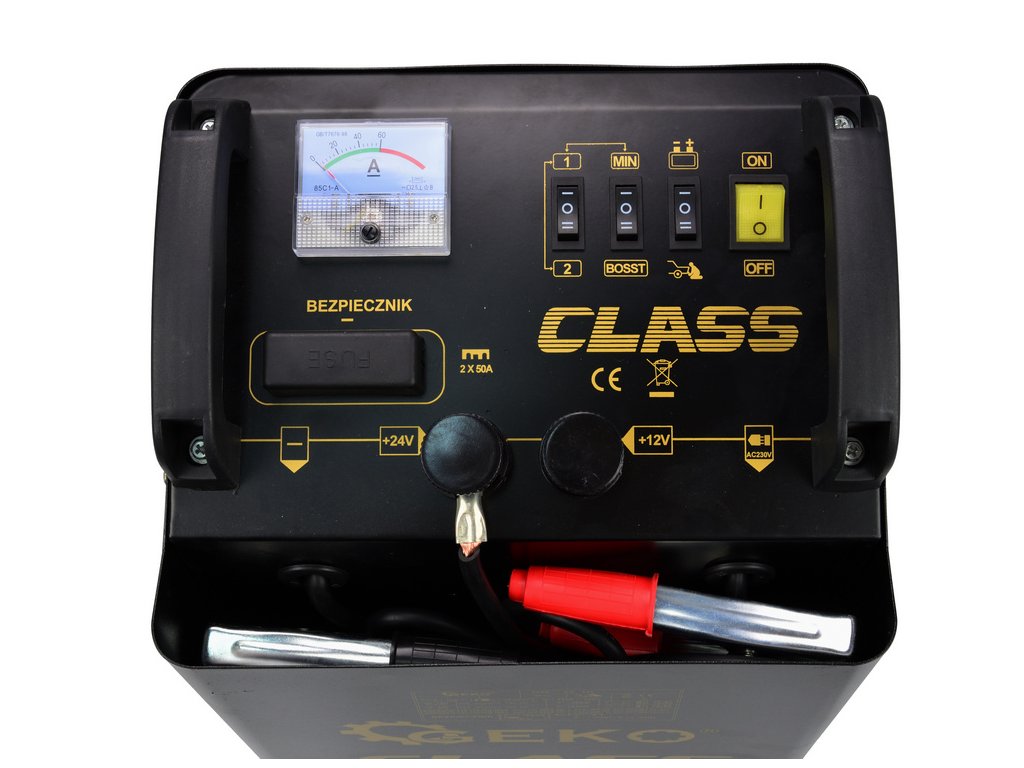Стартерно и зарядно устройство CLASS 430 G80024 е надеждно и ефективно решение за стартиране и зареждане на оловни акумулатори с напрежение 12V или 24V. Този уред е идеален за употреба в товарни автомобили, строителни машини и други превозни средства с двигатели с вътрешно горене, особено при пълно изтощаване на акумулатора или при много ниски околни температури.