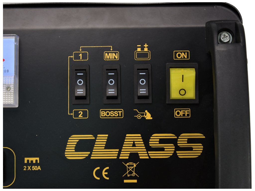 CLASS 430 G80024 е оборудван с термозащита, която при прегряване на трансформатора изключва веригата, както и с таймер, който автоматично изключва устройството след изтичането на зададено време. Тази функция предпазва акумулатора от презареждане по време на бързо зареждане.