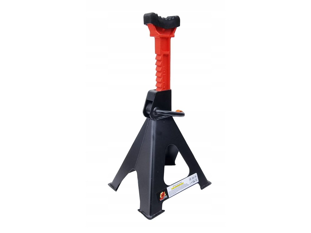 Комплект от две регулируеми стойки с максимална товароносимост 6 тона, идеални за сигурно подпиране на автомобили по време на работа в сервиз или гараж. Гумени защитни подложки предпазват повърхността на автомобила от надраскване. Благодарение на щракващия механизъм е възможно точно регулиране на височината в диапазон от 370 мм до 610 мм. Тези стойки са изработени от висококачествена стомана и имат стабилна основа, която гарантира устойчивост при натоварване.