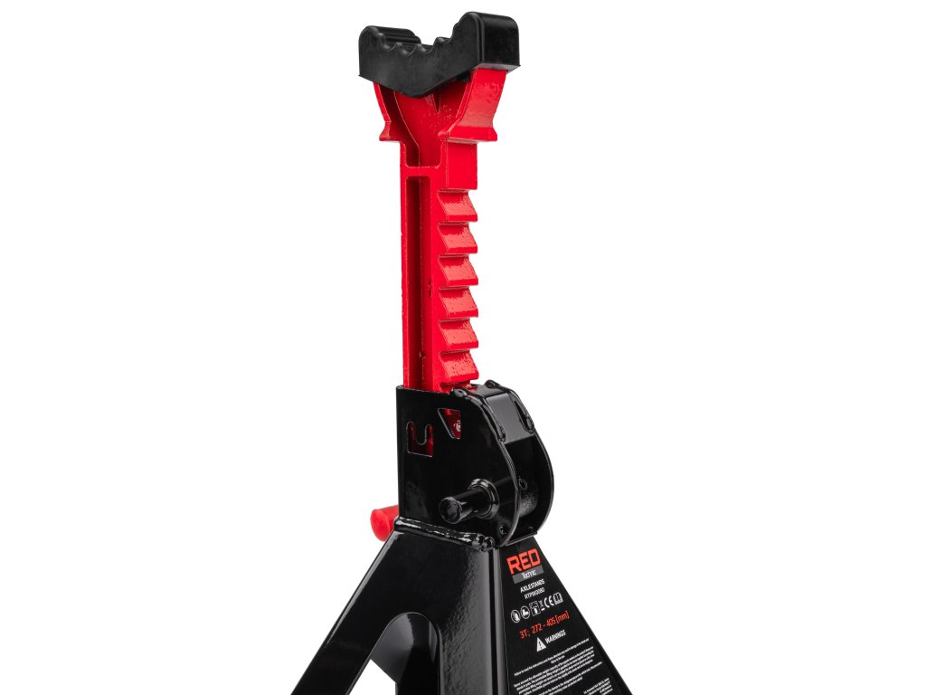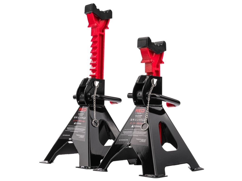 Стойките могат да поддържат товари с тегло до 3 тона и са изработени от висококачествени материали, включително дебел стоманен лист. Разполагат с механизъм на заключване, който позволява много прецизно регулиране на височината на различни нива.