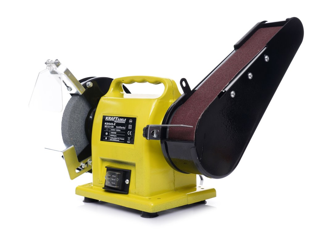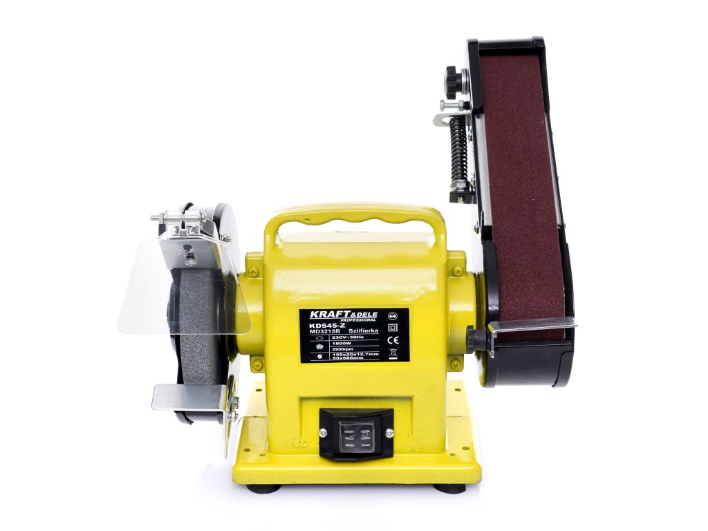 Настолна лентова шлайфмашина 1800 W KD545-Z с марка Kraft&Dele, означение KD545-Z, е професионален инструмент 2-в-1 с мощност 1800 W. Този модел е предназначен за суха работа в областта на шлайфането, заточването и почистването на различни режещи инструменти, ножове, битове, метални детайли, ключове и други инструменти и предмети. Устройството се отличава с високо качество на изпълнение, изработено е с използване на най-новите технологии, основани на изпитана конструкция. Такъв дизайн осигурява дълъг живот на уреда, прецизност на работа и безвибрационен ход.