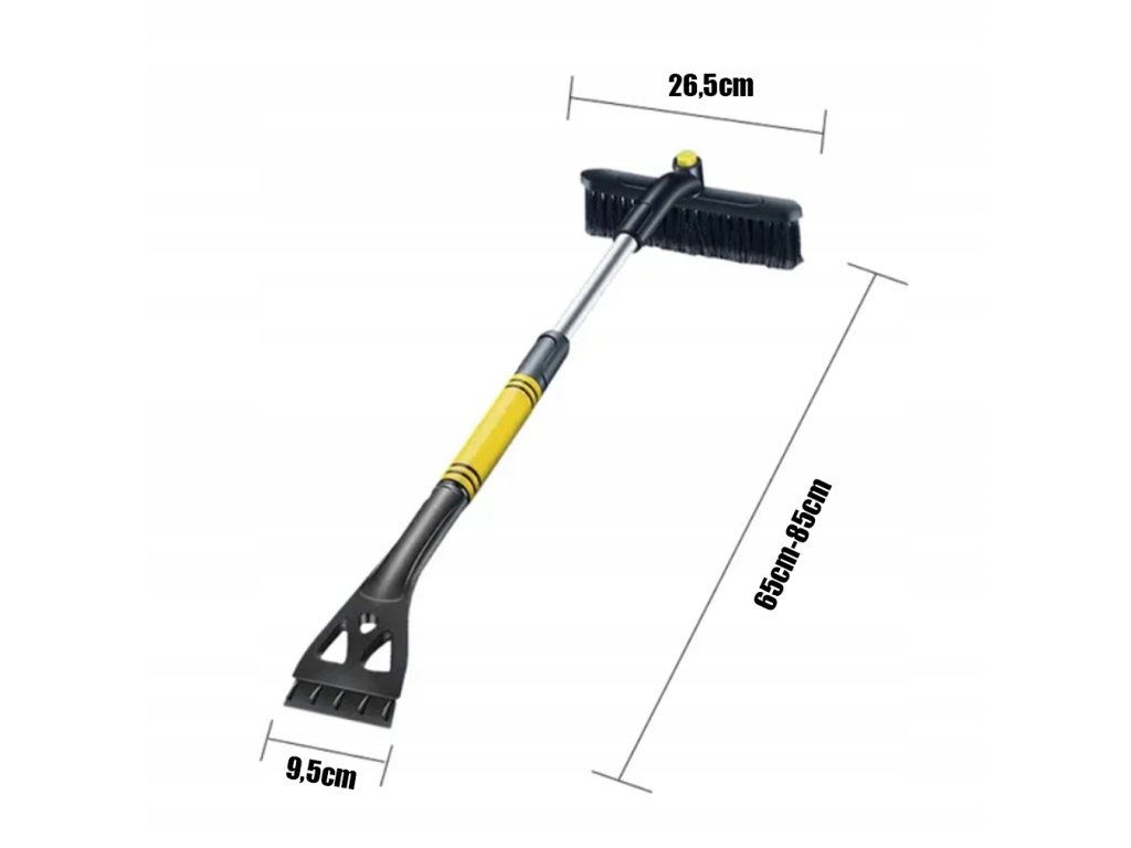 Тази телескопична стъргалка и четка за почистване на сняг - регулируема до 85 см е идеален помощник за зимната грижа за вашия автомобил. Благодарение на дължината до 85 см лесно достигате до всички части на колата. С практичен 360° въртящ се механизъм на четката и здрав телескопичен механизъм, работата е бърза, ефективна и безопасна както за каросерията, така и за стъклата на автомобила.